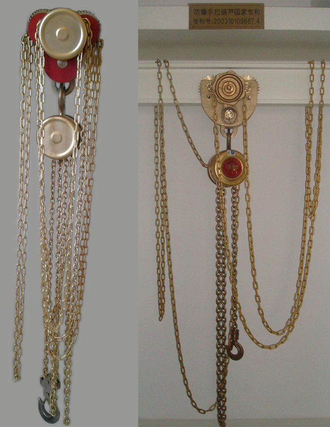 就是將防爆手拉葫蘆與防爆單軌小車結合在一起使用,從而具有在工字鋼上左右行走的能力。