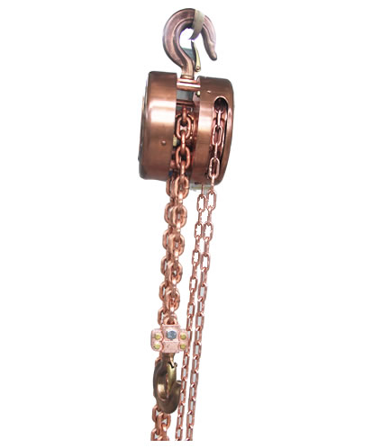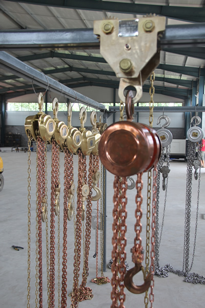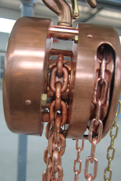 防爆鈹銅手拉葫蘆經(jīng)常在石油、石化、油站、油庫、采氣、化工、軍工、電力、礦山、電子、鐵路、等潛在火患和爆炸的危險環(huán)境中使用。